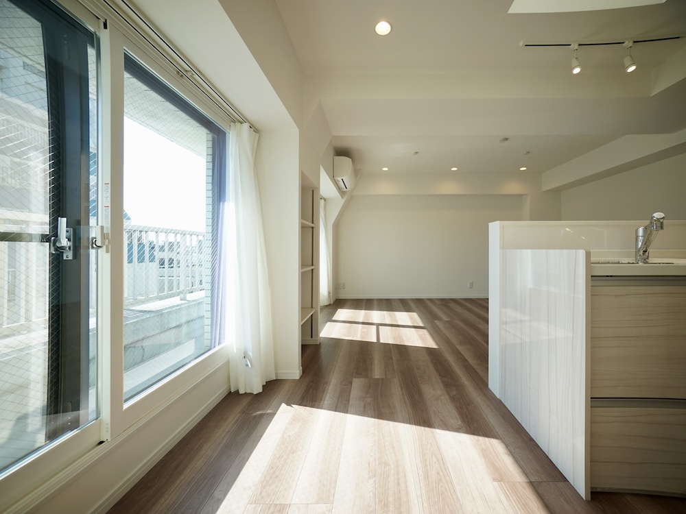 二方の窓から日差しが降り注ぐ、最上階の東南角部屋。二重サッシの省エネ仕様で、年間を通して快適に過ごすことが可能です。