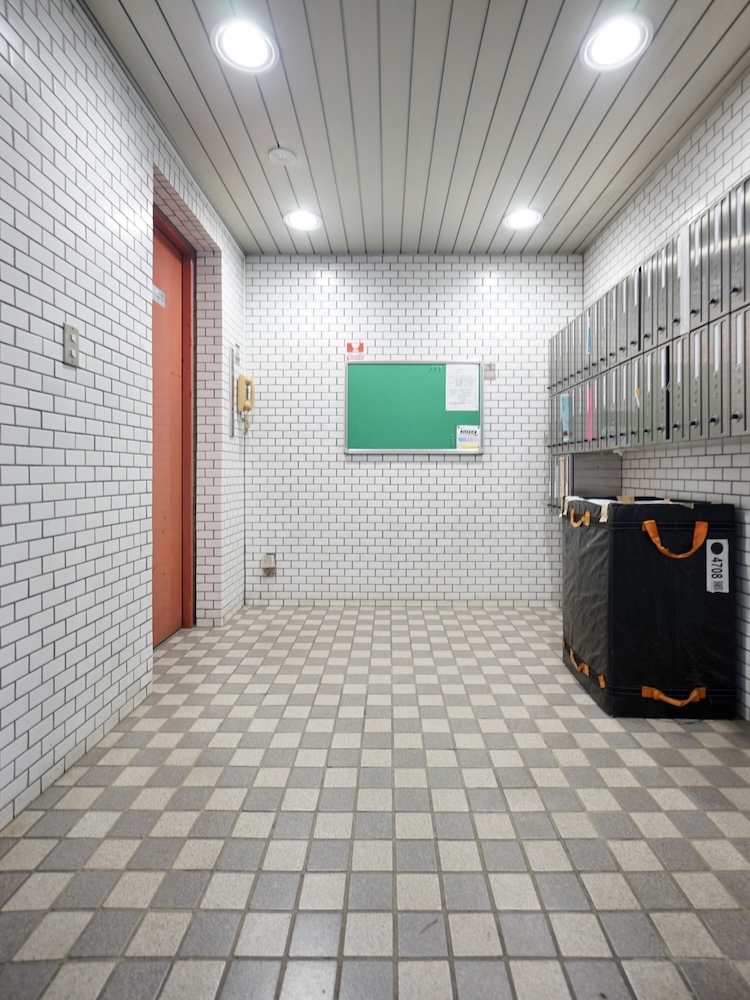 簡易宅配ボックスや掲示板も整理され、良好な管理体制がうかがえます。