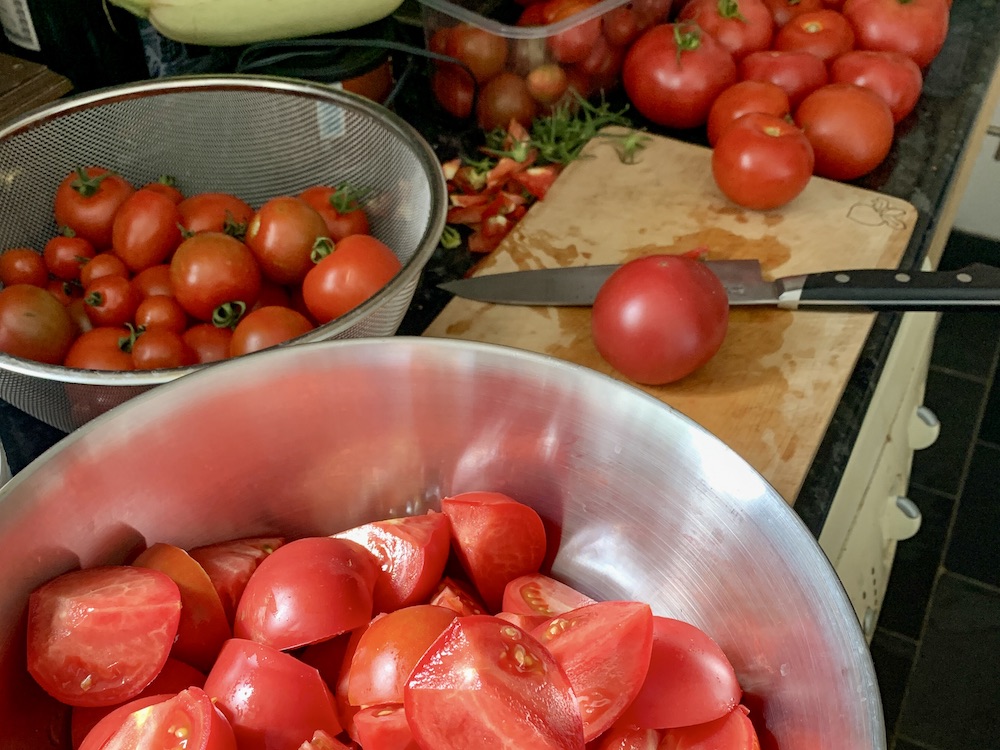 予想以上の大収穫を得たら、なるべく無駄にしないよう、保存食づくりに勤しむのです。